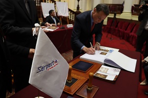 SEÑORAS Y SEÑORES, SERPOST, COMO OPERADOR POSTAL DEL ESTADO PERUANO, SE RIGE COMO UN PUENTE SIMBÓLICO QUE CONECTA A NUESTRO PAÍS CON EL MUNDO, TRANSMITIENDO VALORES DE COOPERACIÓN, PAZ Y SOSTENIBILIDAD. AHORA, A TRAVÉS DE CADA ENVÍO O PAQUETE QUE CRUCE NUESTRAS FRONTERAS, SE ESTARÁ CONSOLIDANDO UN PERÚ COMPROMETIDO CON LA PRESERVACIÓN DE LA ANTÁRTIDA Y CON EL BIENESTAR DE LAS GENERACIONES FUTURAS.
